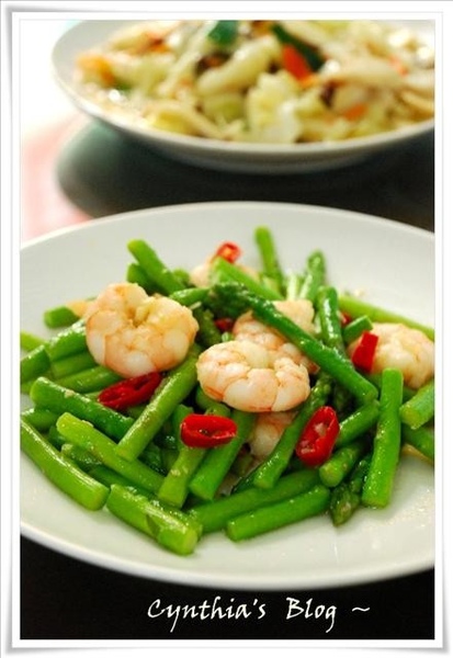 1.綠蘆筍切段 + 蝦仁洗淨備用